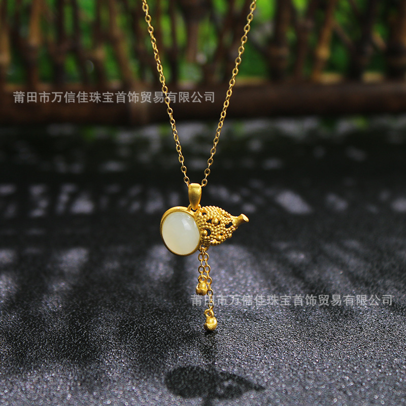 玉のペンダントの女性の金のa商品の翡翠のピシュピストのペンダントの玉平は925銀の鎖骨のネックレスの玉のヒョウタンを掛けます。