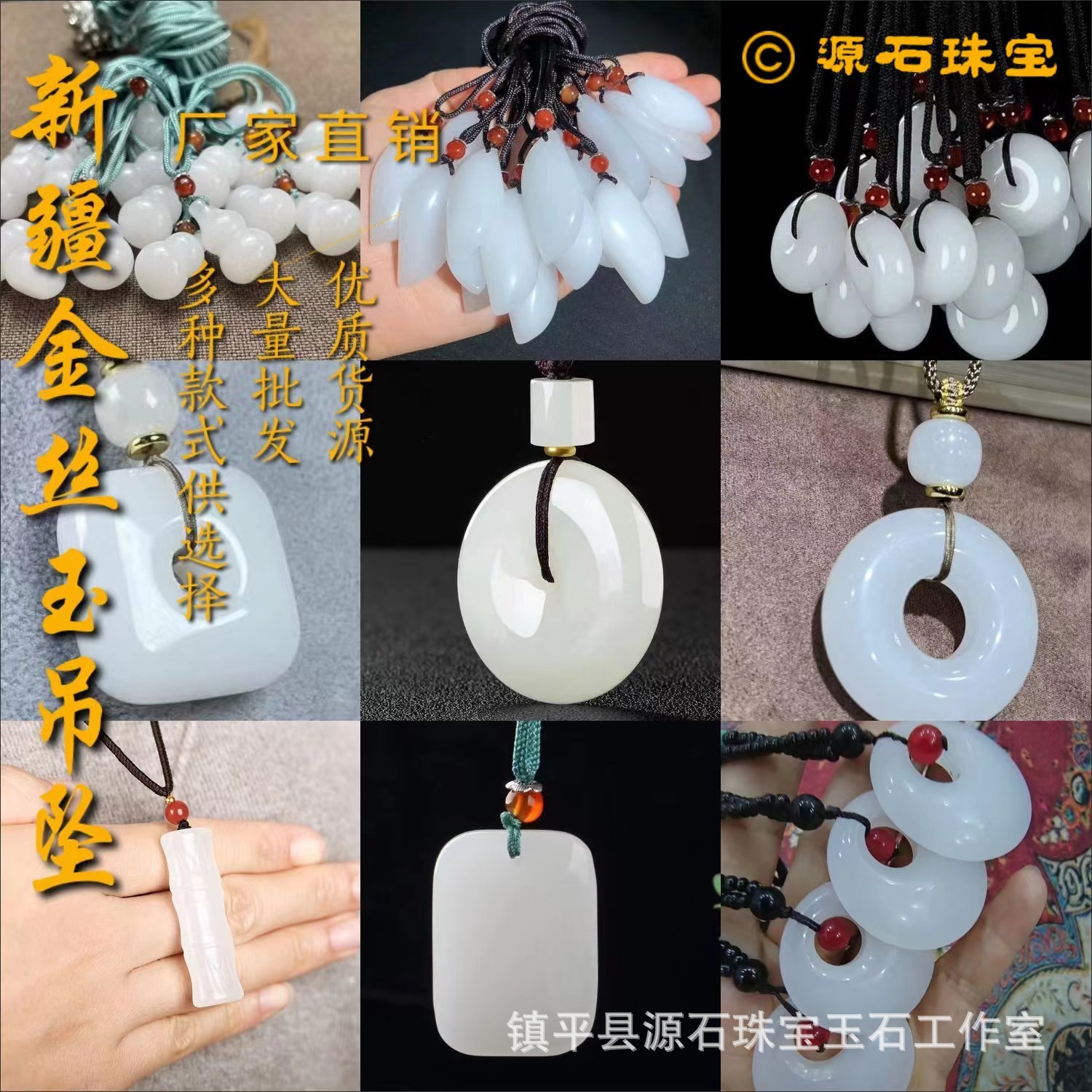 天然新疆金糸玉和田白玉平安ボタンひょうたん平安ブランドペンダント玉器ストラップ直播商品ソース