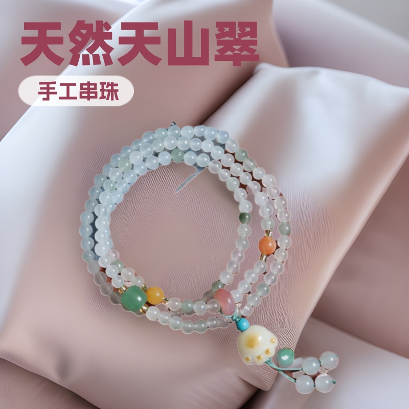 新中国式新疆天然天山翠小衆デザイン高級感猫爪数珠多層手串女子アクセサリー