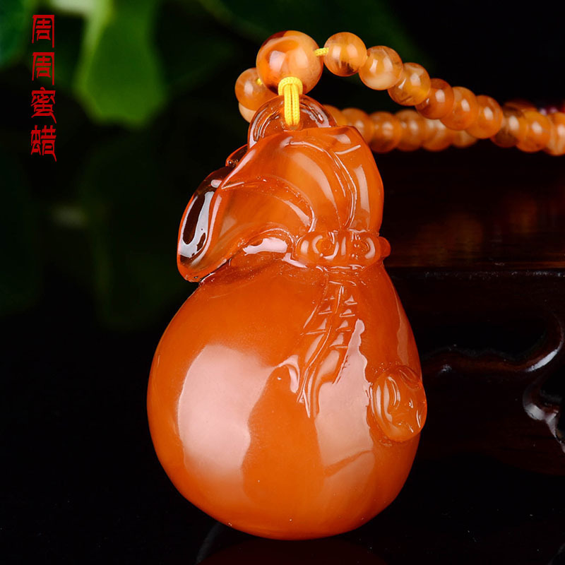 一枚代の鶏油の黄色の蜜ろうのお金の袋は琥珀の袋のペンダントの男女のセーターのチェーンの卸売りメーカーにぶら下がって販売します。