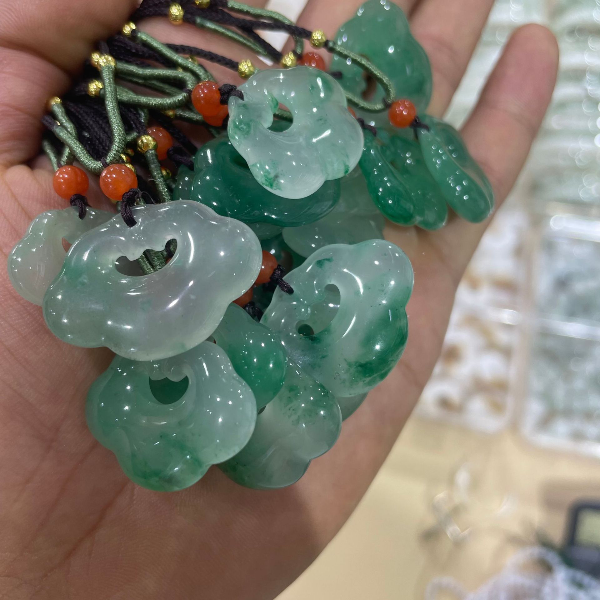 卸売天然独龍翡翠安全バックルペンダントアフリカエメラルドリーフ如意翡翠色縁起の良い雲ロックマネーバッグペンダント