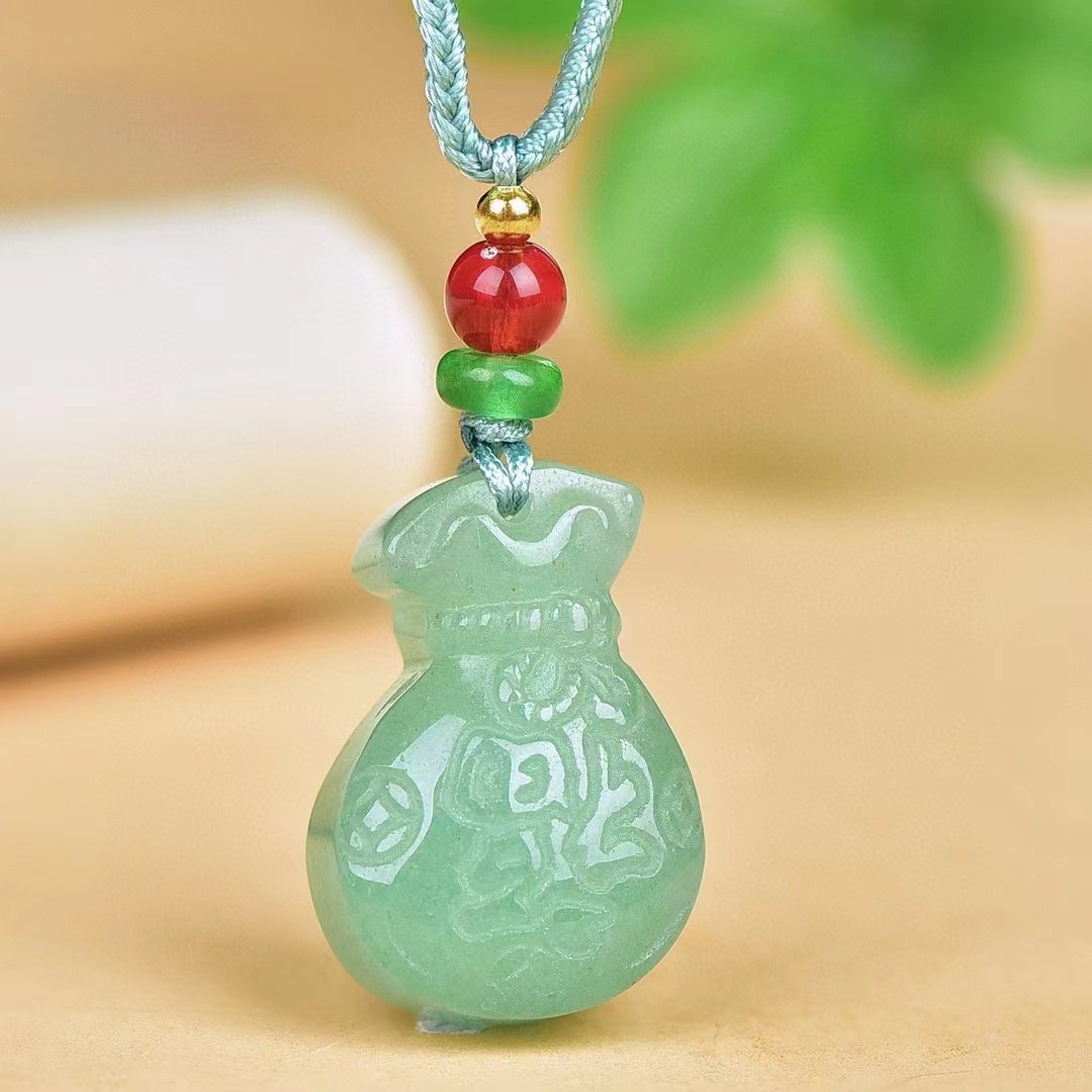 卸売り東陵玉銭袋ペンダント翠玉玉ペンダント男女カップルの緑黒ロープの女性プレゼント