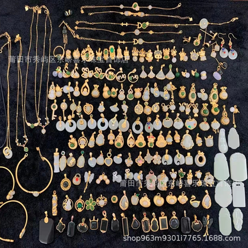 古法金s925純銀モザイク天然和田玉ペンダント金モザイク玉直播爆金白玉碧玉代発