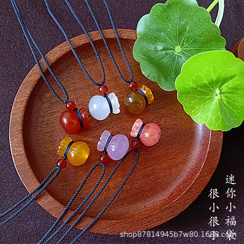 天然玉髄瑪瑙ミニ福袋紅白粉黄シャンパン金可愛い小玉ペンダント小銭袋を彼女に送ります。
