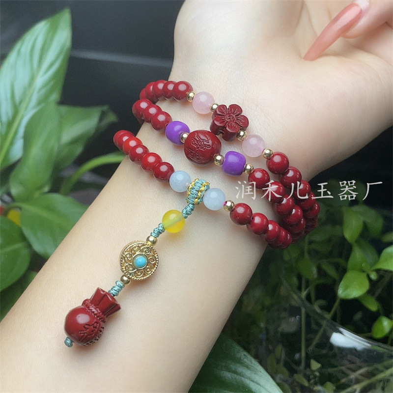 代発高含有量朱砂多輪銭袋ブレスレットdiyデザイン金辰砂福袋朱砂多輪手串