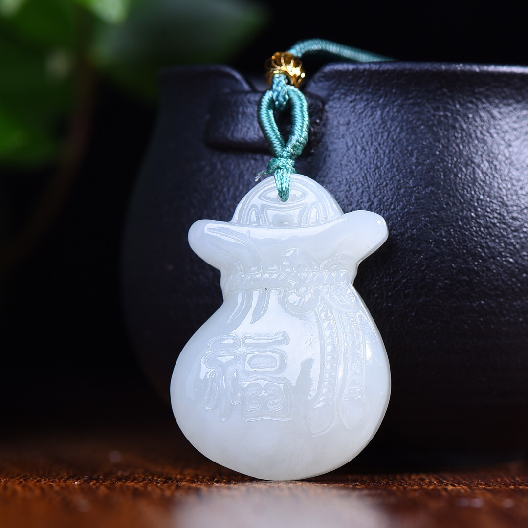 和田玉元宝銭袋玉ペンダント男女の玉ネックレスペンダント新疆白玉ブランドペンダント