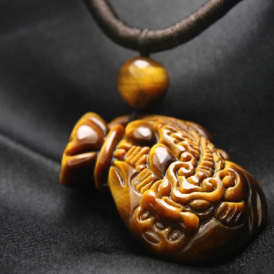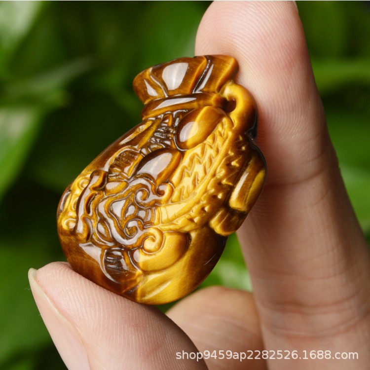 天然虎精石銭袋玉ペンダント男女金黄虎精玉代金持ちストラップ