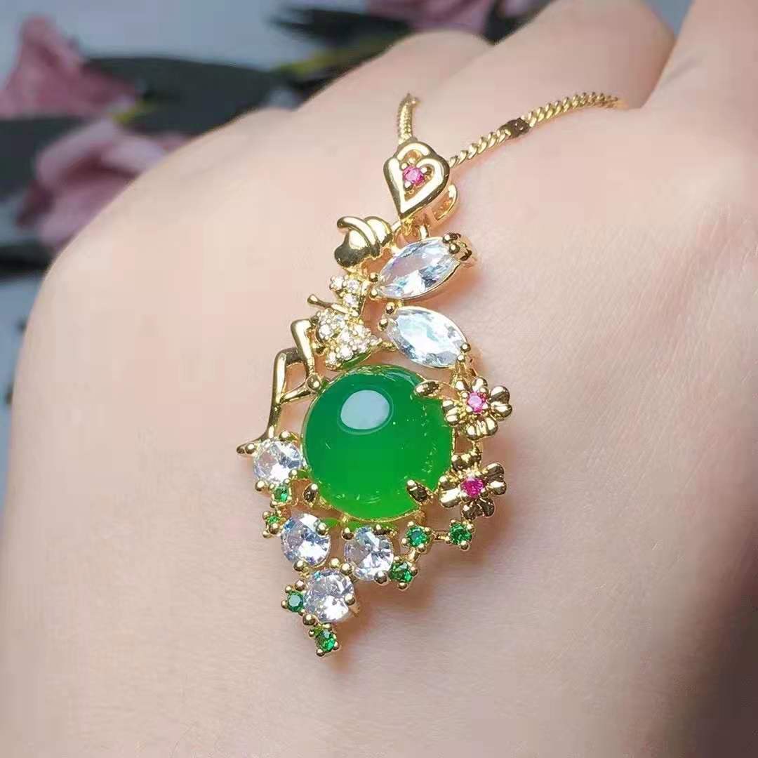 小銭袋翡翠a商品玉ペンダント銀ネックレス女性福袋玉ペンダントアクセサリーは彼女の母に925銀飾りを贈る