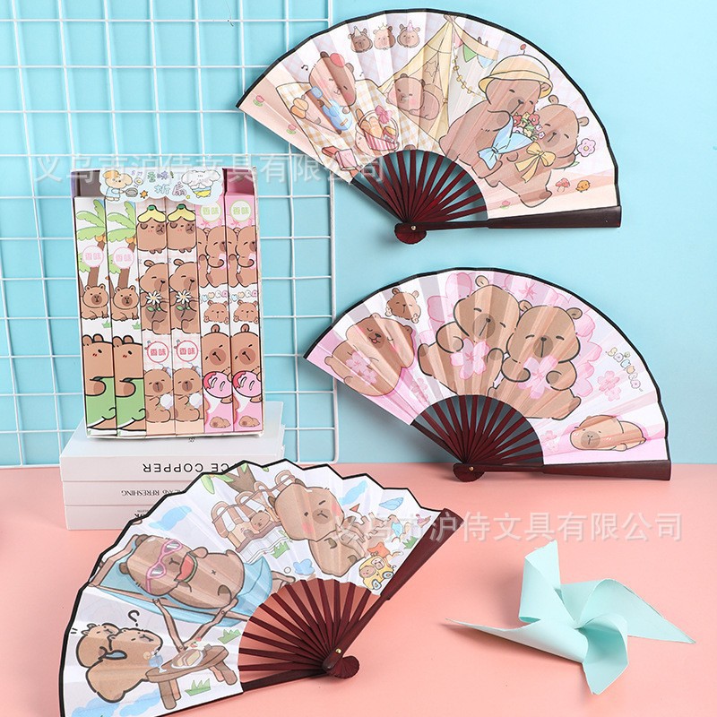 高颜値二次元卵仔パーティー折り畳み扇風機かわいい携帯8インチ折り畳み扇子新両面絵扇子