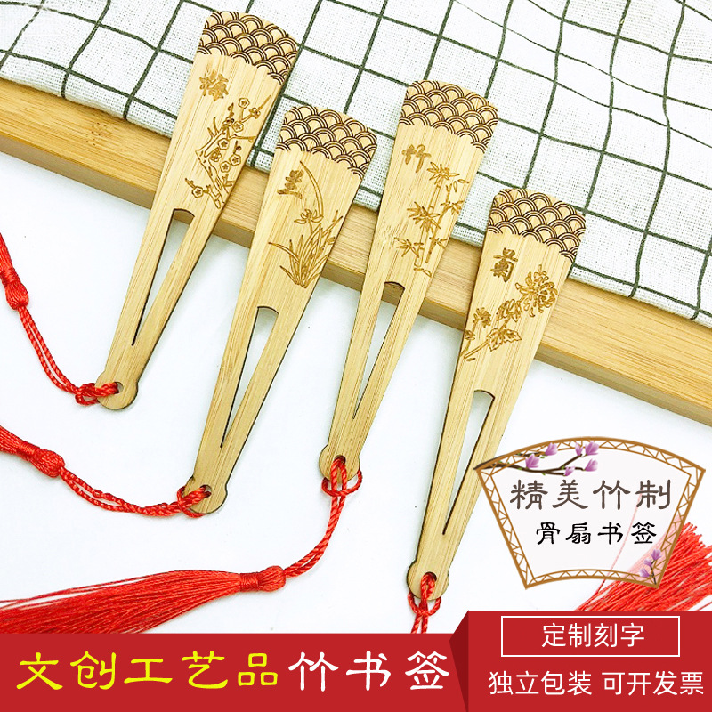 文創製品竹製骨扇しおり梅蘭竹菊透かし彫り字流蘇の美しいビジネスプレゼントカスタム卸売り