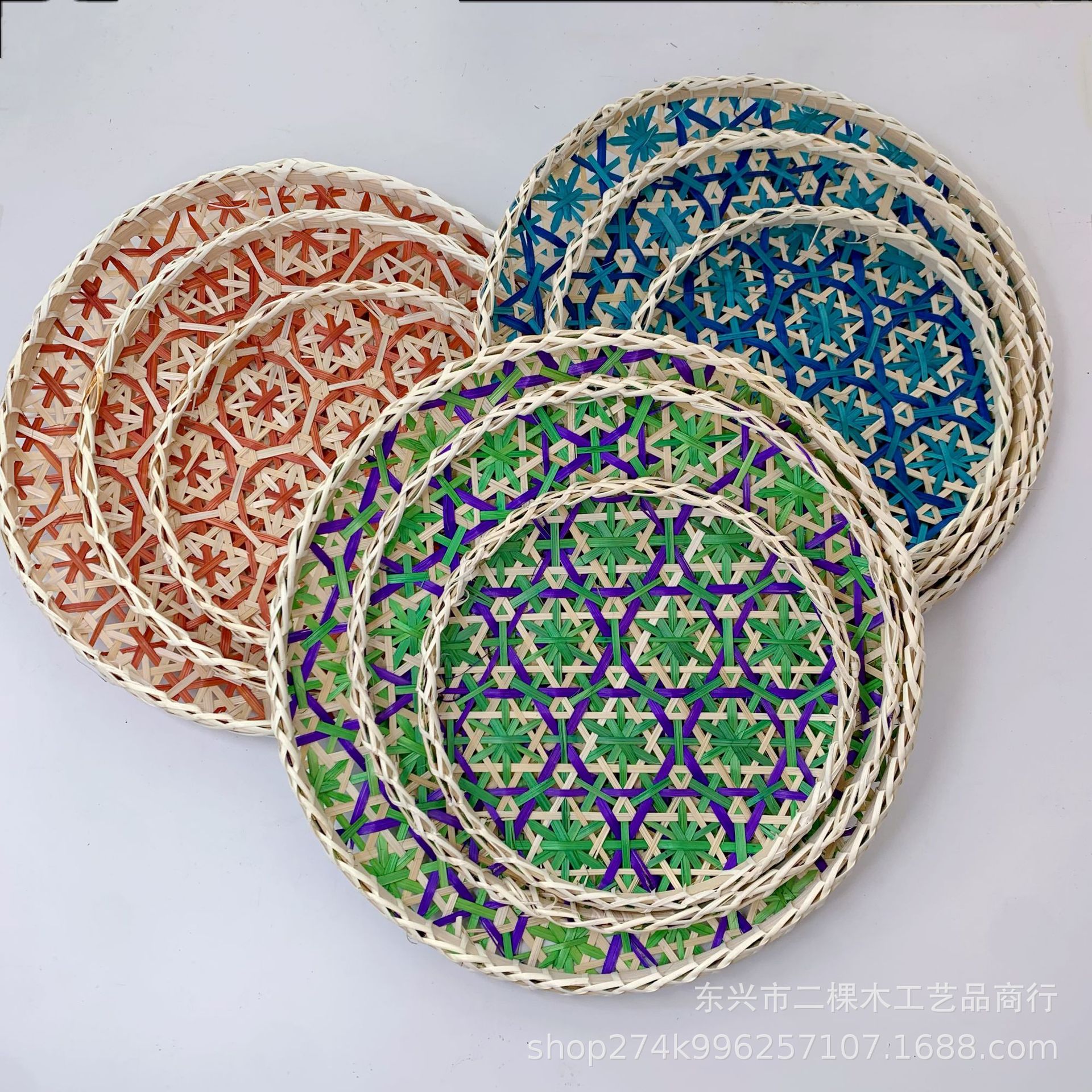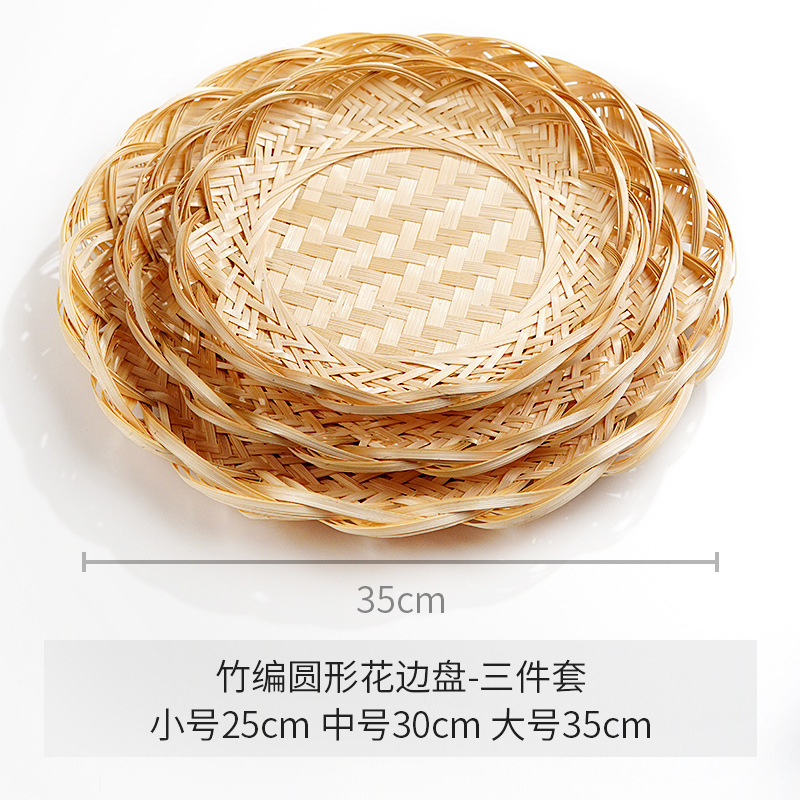 竹編み竹製品浅い口非多孔質竹ふるいラウンドちりとり竹プラークトレイ幼稚園手作り装飾卸売