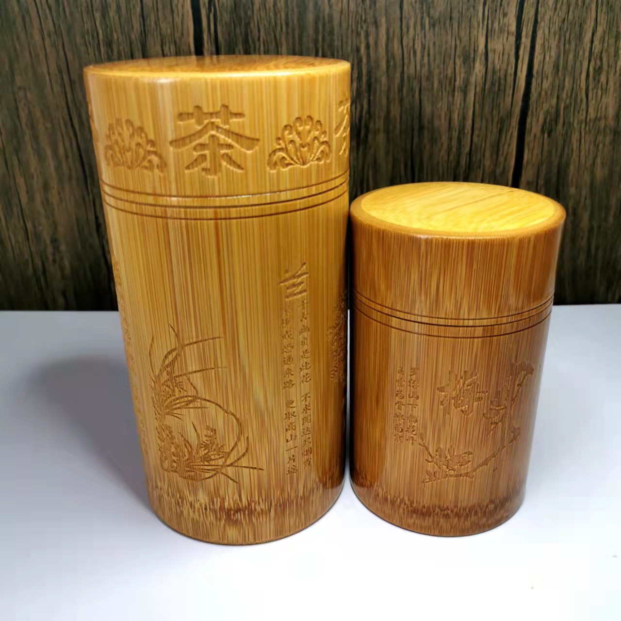 竹製品炭化小茶缶彫刻茶葉缶大型直筒平口工芸品竹茶筒卸売