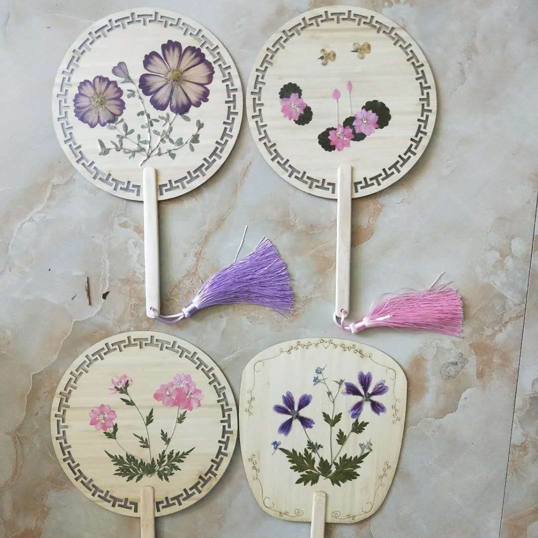 ドライフラワーうちわ、真花うちわ、真花うちわ、複固うちわ、竹うちわ