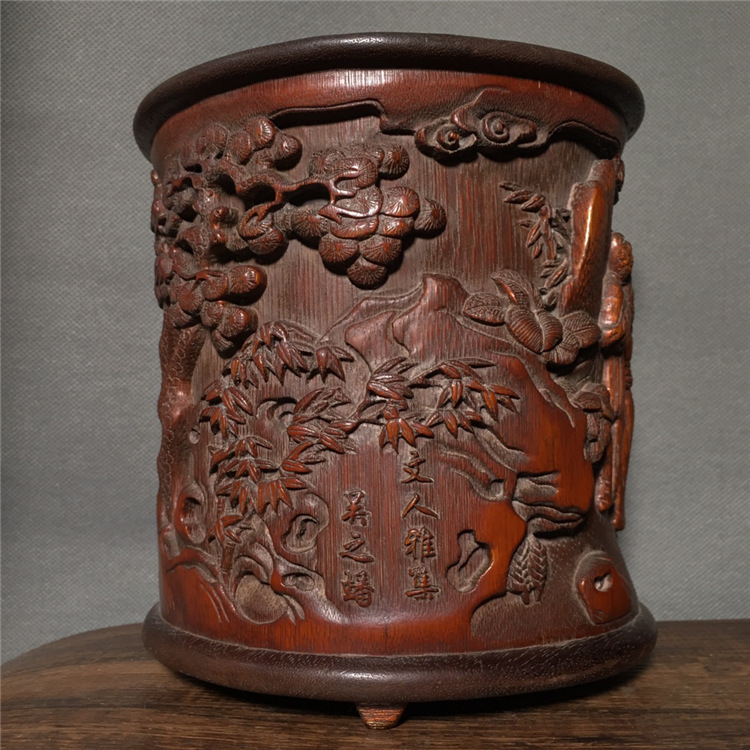 骨董品の古い竹の彫刻の竹の根の彫刻の筆筒の文人雅集の文の部屋の用品の古典的な復古の家の装飾品