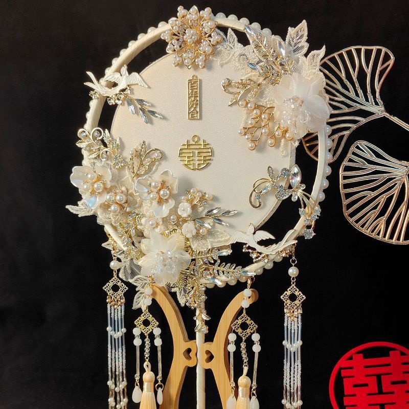花嫁婚扇結婚団扇喜扇子小紅書中国式結婚式手持ち婚扇漢服双輪