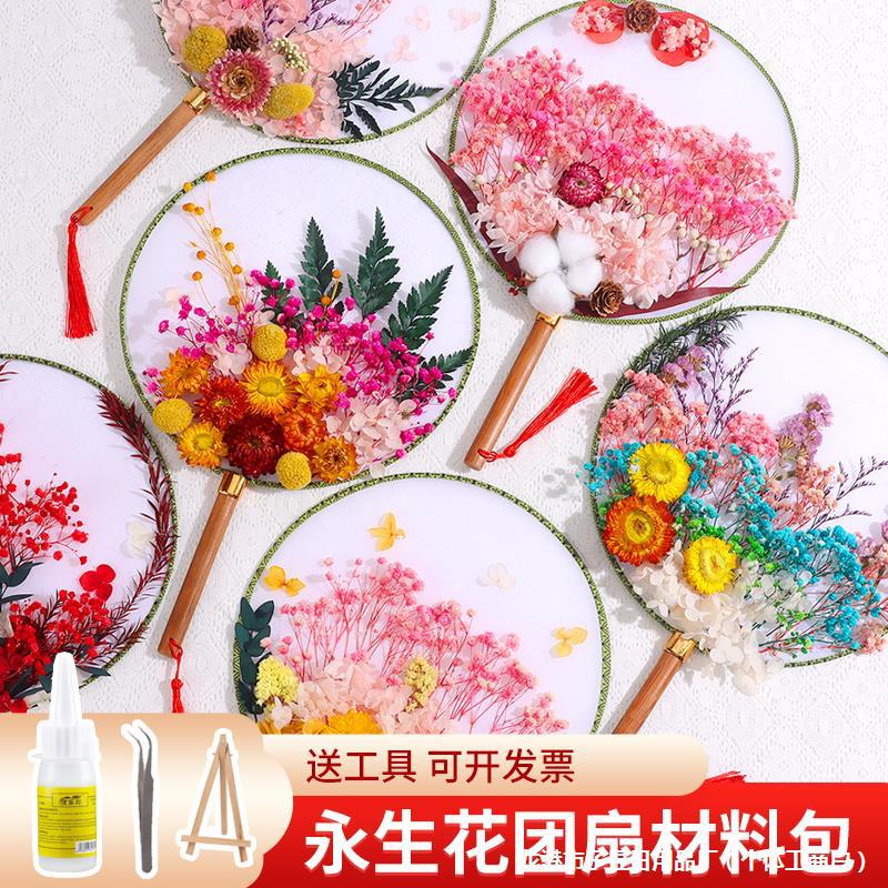 卸売りドライフラワー団扇diy花押花古風宮扇親子コミュニティサロン団建活動手作り扇子