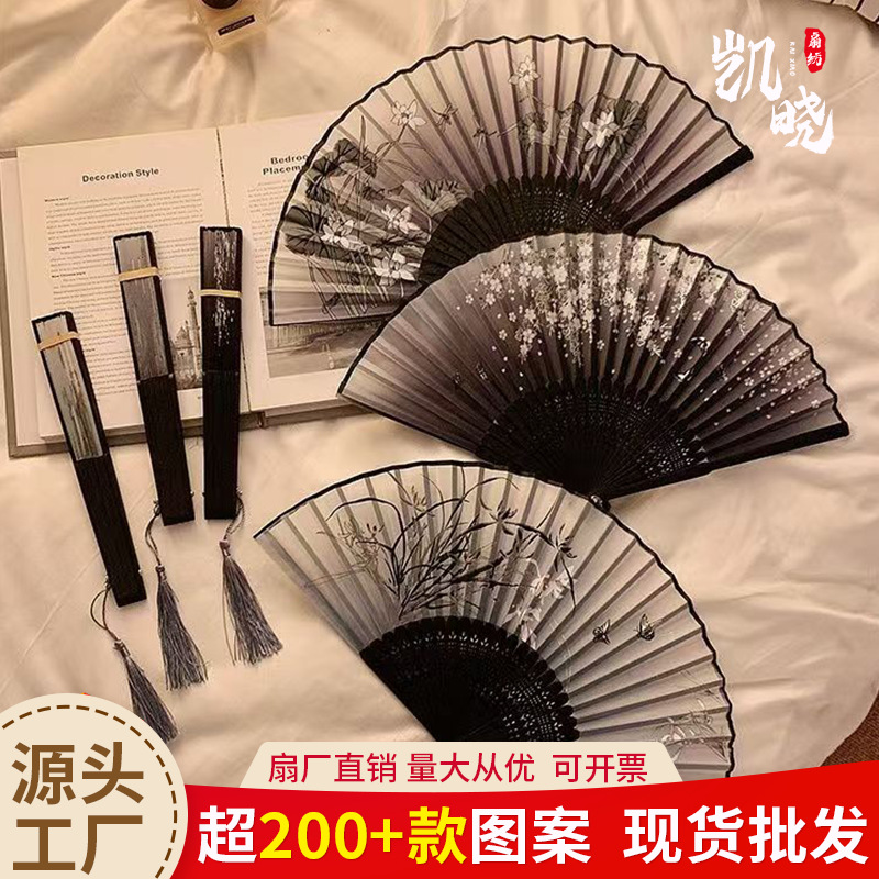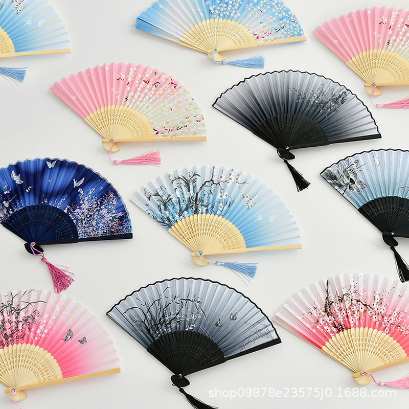 仕女扇子絹布女扇竹扇プリント扇中国風工芸品折り扇ギフト扇卸売り対外貿易国内販売
