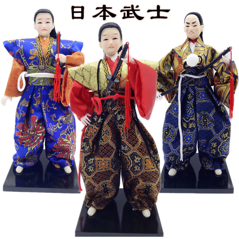 日本の武士の人形の家の装飾の料理の店の置物の絹の人形の和風の武士の忍者の人形