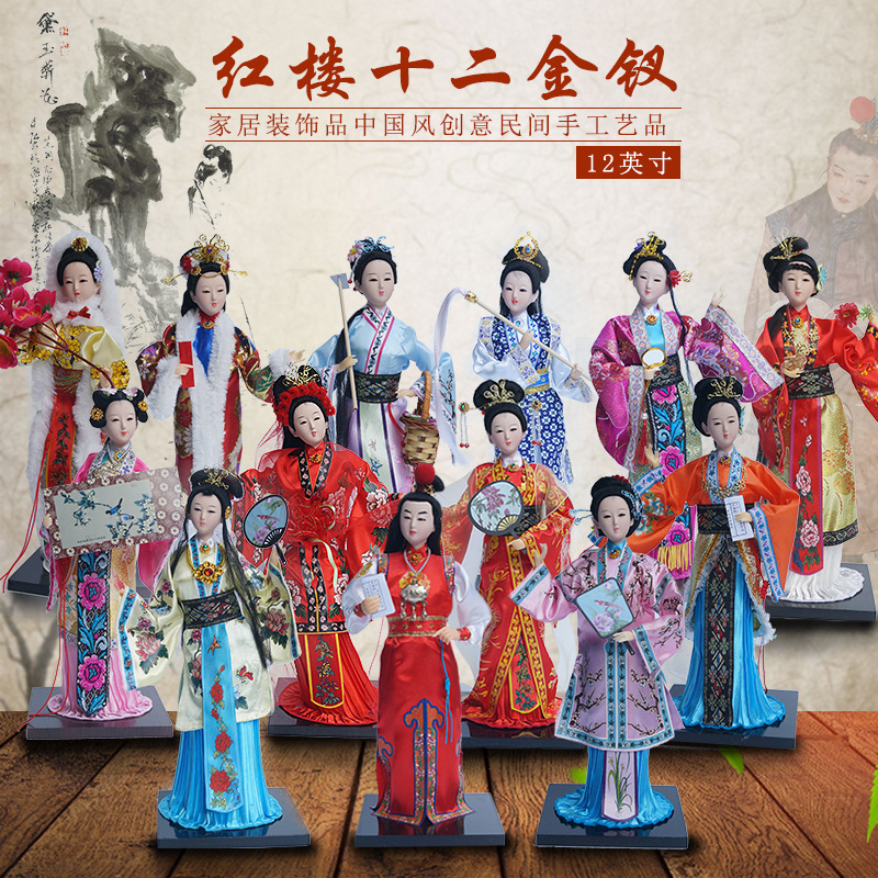 中国工芸品の装飾品、紅楼夢のキャラクター、十二金簪、絹人形、家の装飾ギフト、純粋な手作り
