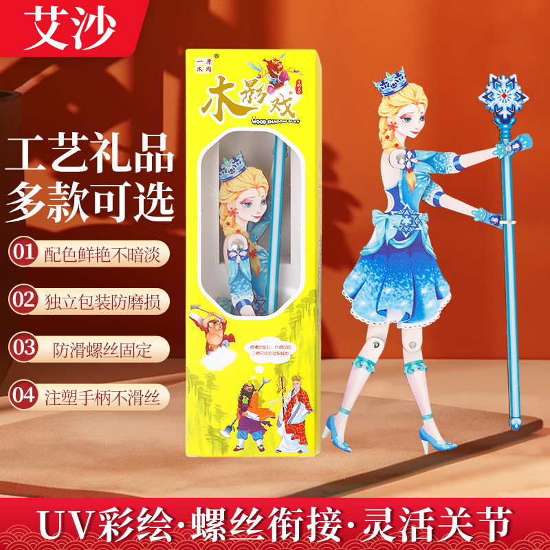メーカー卸売りの木質の皮影艾莎王女の皮影劇の演出道具の子供の片手の影人のおもちゃ