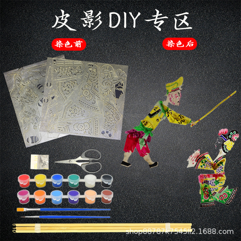 皮影劇手作りdiy人形道具児童幼稚園手作り彩色皮影diy材料包西遊記