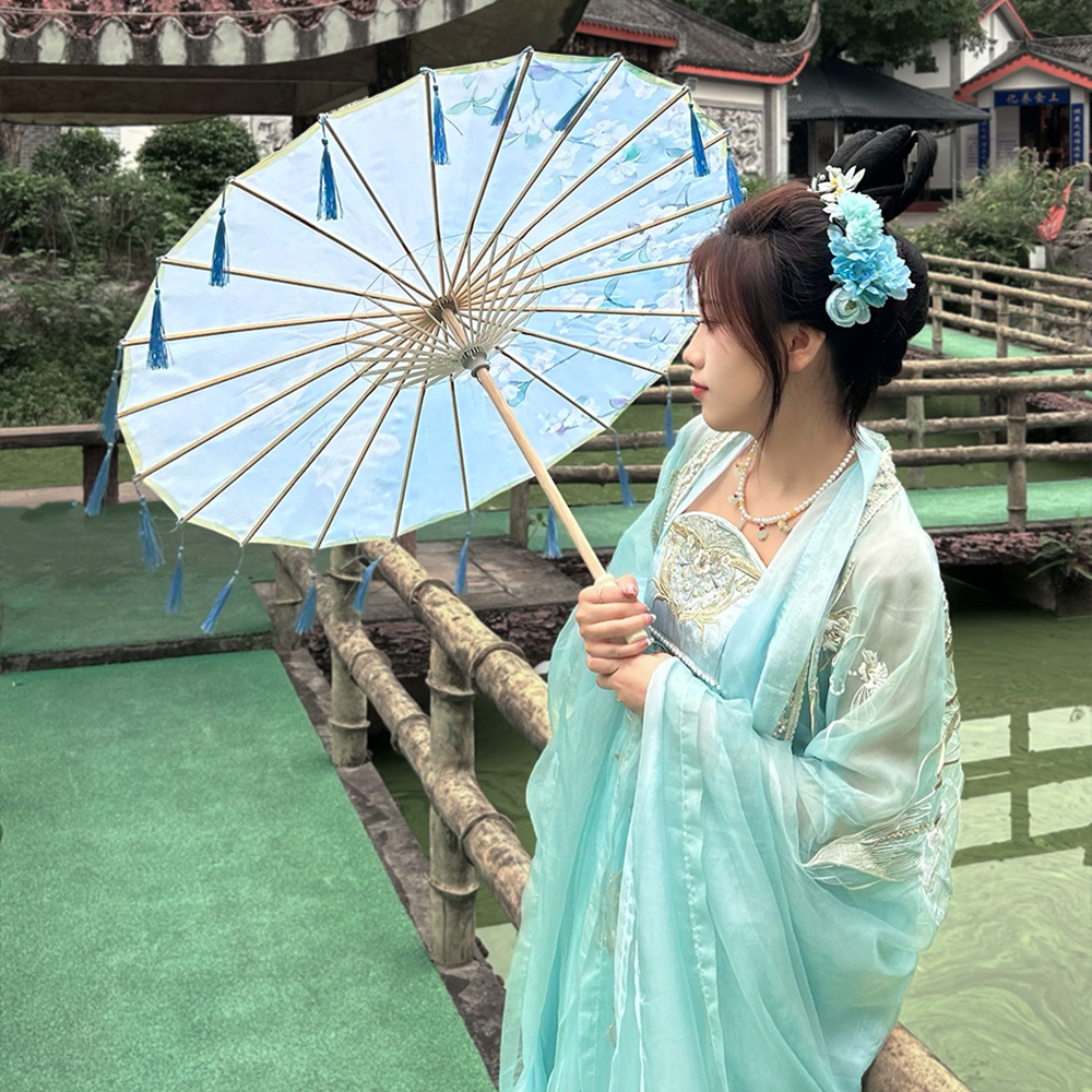 古風流蘇ダンス絹布傘女性中国風ダンス演出古典時代チャイナドレス漢服道具装飾傘