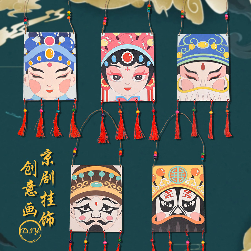 中国風京劇フェイシャルハンドペイント DIY 着色絵画木製製品吊り下げ装飾品幼稚園教室の装飾