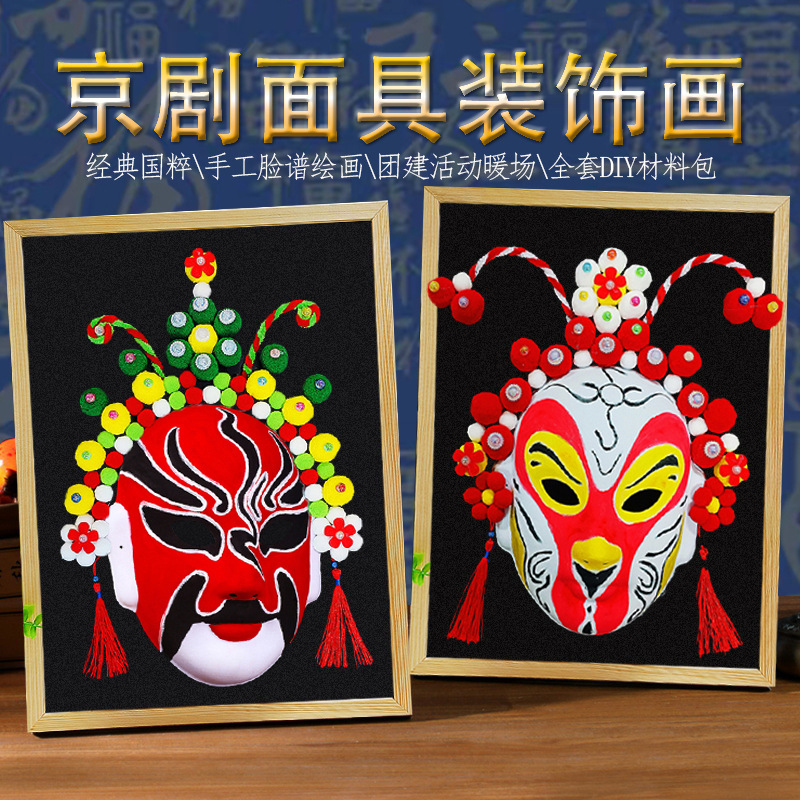 国潮京劇フェイスブックDIY植毛フォトフレームマスク手作り材料団建活動幼稚園手描きフェイスブック