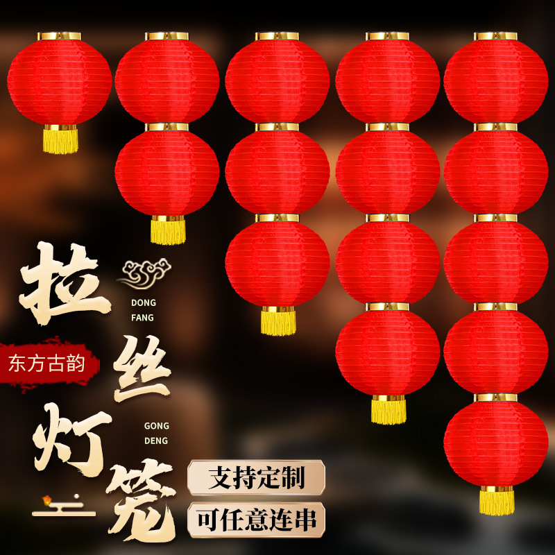 大紅伸糸灯籠串旧正月折り畳み大紅冬瓜連提灯広告印字結婚提灯卸売り