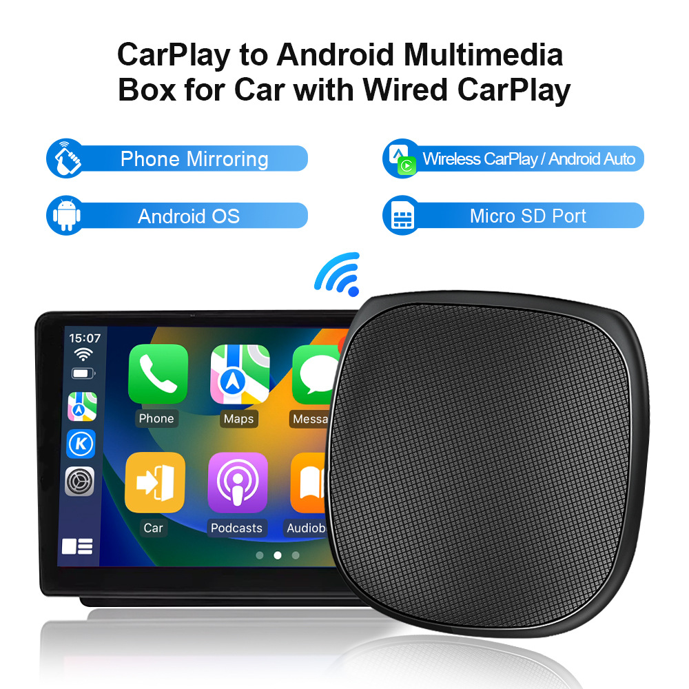 汎用Carplayボックスアンドロイド13は、原車が有線CarPlayを持って無線アンドロイドAutoを適用する