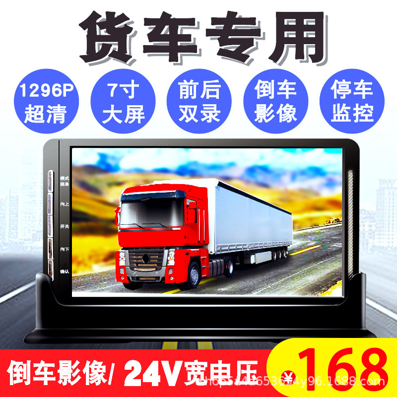 新型7インチトラックドライブ記録計ハイビジョンカメラ前後2路24v汎用車載バック映像