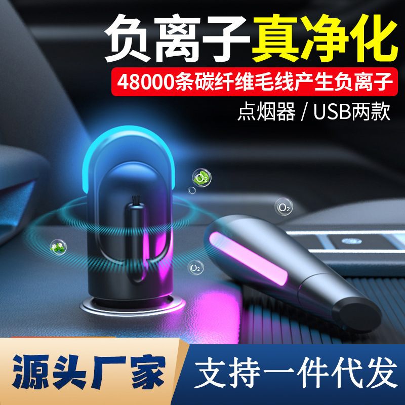 新型車載空気清浄機家庭用オフィスデスクトップマイナスイオン走馬灯携帯除煙清浄機