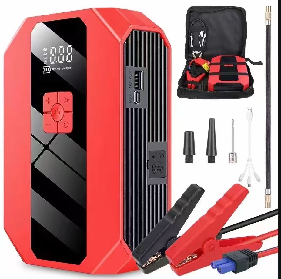 国境を越えた車の緊急始動電源、エアポンプ、電源バンク、多機能ポータブルバッテリー点火スターターを統合