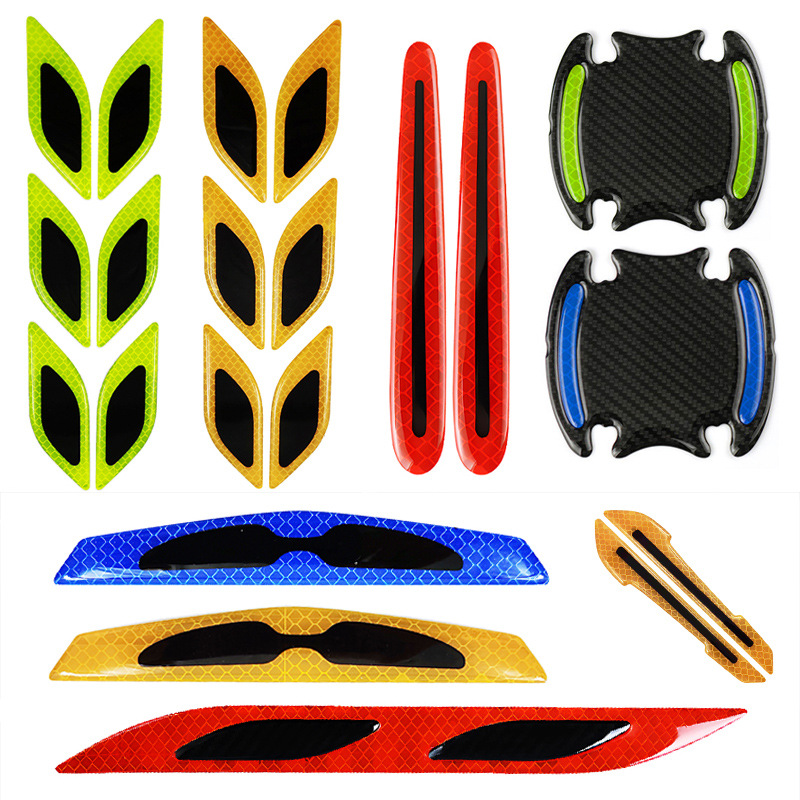 車の反射はバックミラーのドアの碗の取っ手の取っ手の保護を貼って衝突防止の条の炭素繊維の反射の警告の装飾を貼ります。