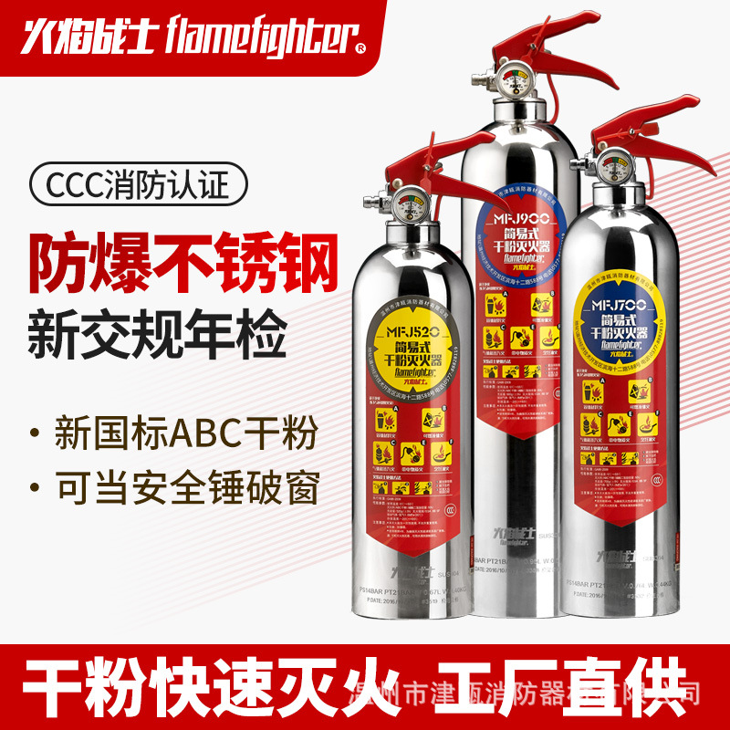 火焰战士车载灭火器不锈钢干粉灭火器便携汽车家用厨房用消防器材