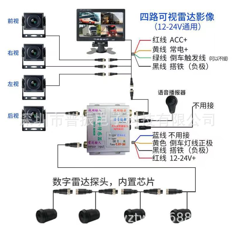 24Vトラックバックレーダーブザー死角警報大型車バック4探知レーダー泥頭車セミトレーラー共通