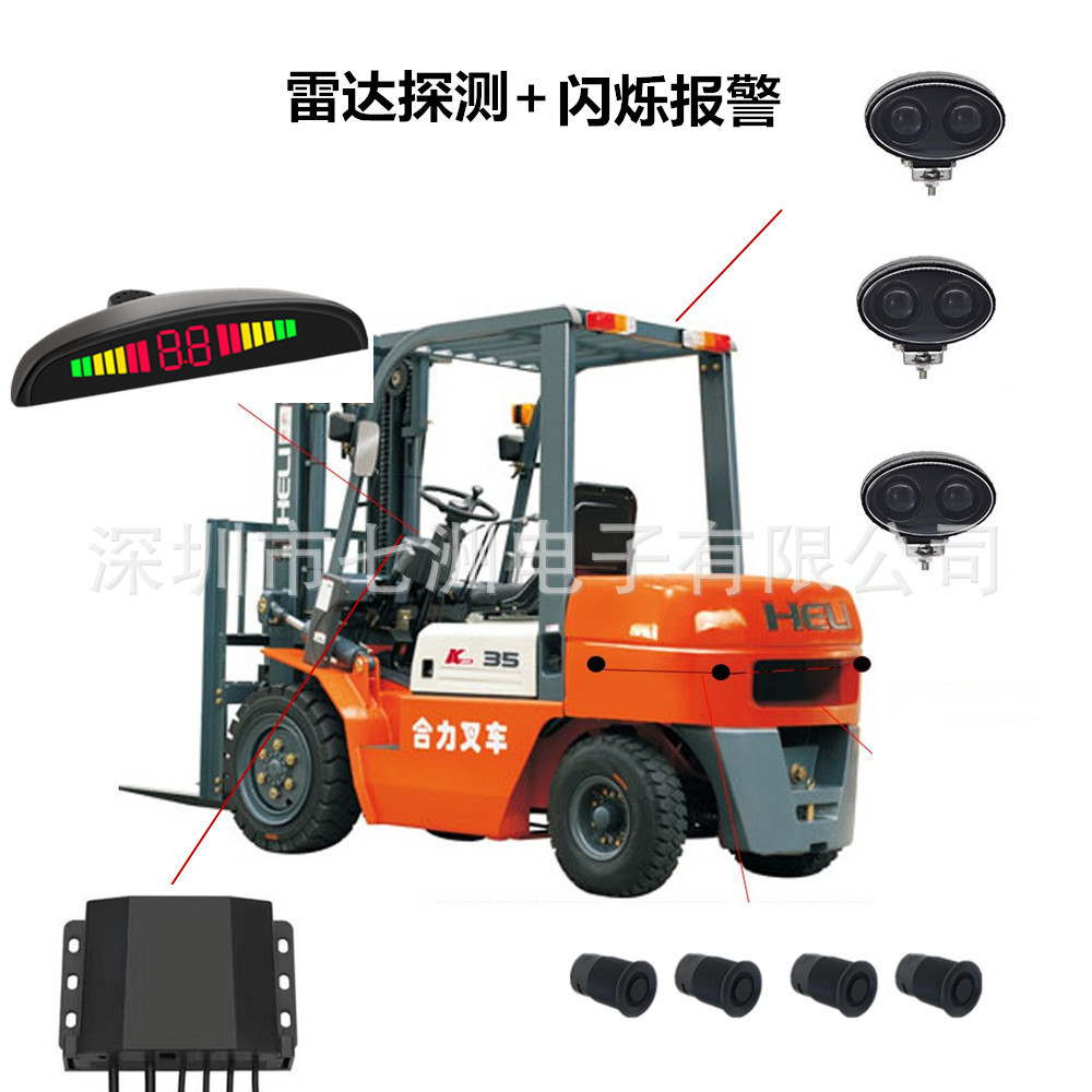 フォークリフトバックレーダーai衝突防止システム音光警報トラックローダー監視映像航空線抵抗