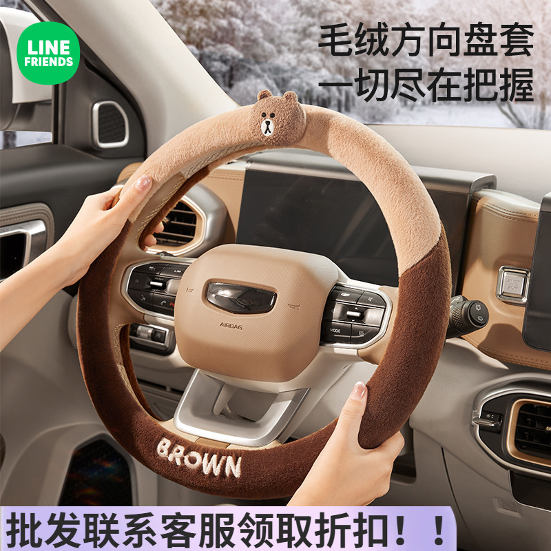 ブラウン熊アニメ自動車四季通用冬のぬいぐるみハンドルカバー女性のかわいい春夏秋冬車ハンドルカバー