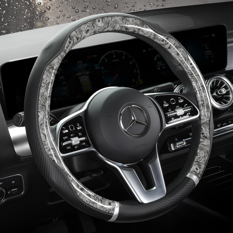 新型水晶桃木目自動車ハンドルカバー炭素繊維滑り止め耐摩耗性四季通用クロスボーダーアマゾンハンドルカバー