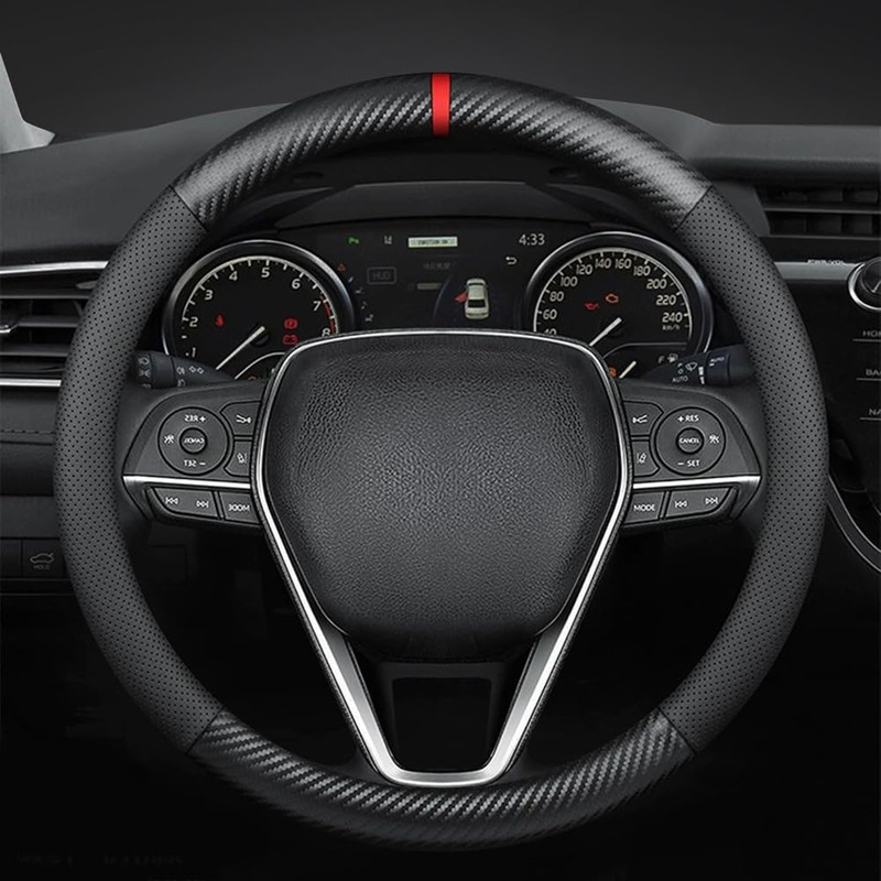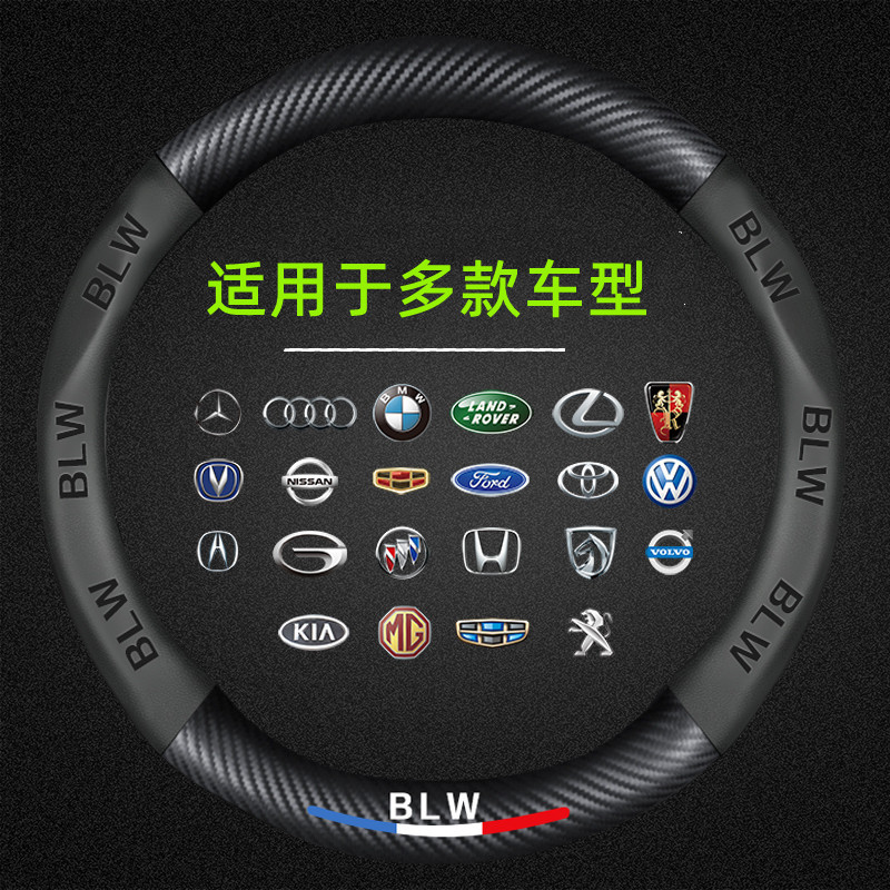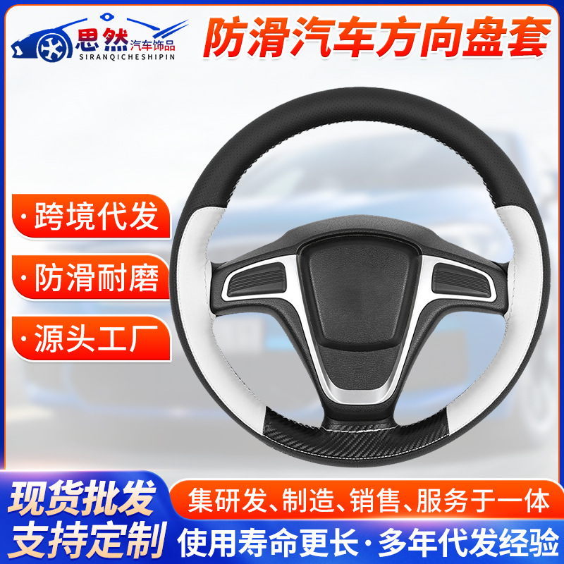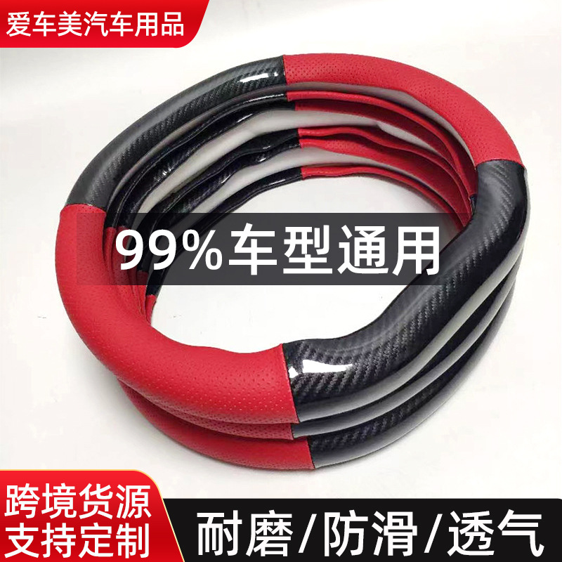国境を越えた自動車用カーボンファイバーステアリングホイール保護カバー、快適で滑りにくいカーボンファイバーレザー保護カバー、滑り止めハンドルカバー