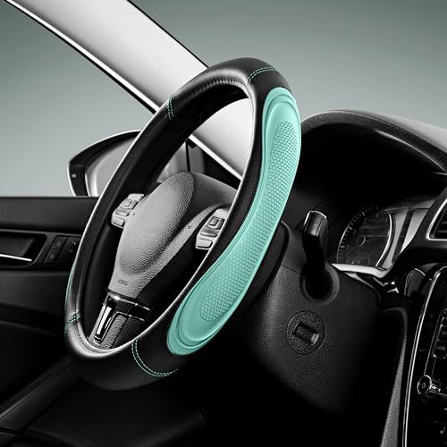 クロスボーダーミントグリーンマイクロファイバーレザーステアリングホイールカバー滑り止めデザイン 14.5-15inch モデルと互換性あり