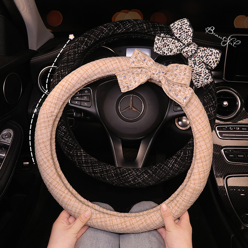 車のハンドルカバーの女神の女性の四季通用の蝶結びの車のハンドルカバーの女性のかわいい滑り止め