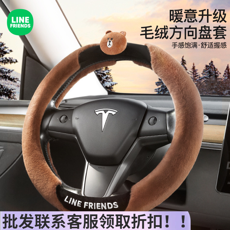 車のハンドルカバー冬のぬいぐるみのかわいい漫画冬の女性のハンドルの通用保護カバー