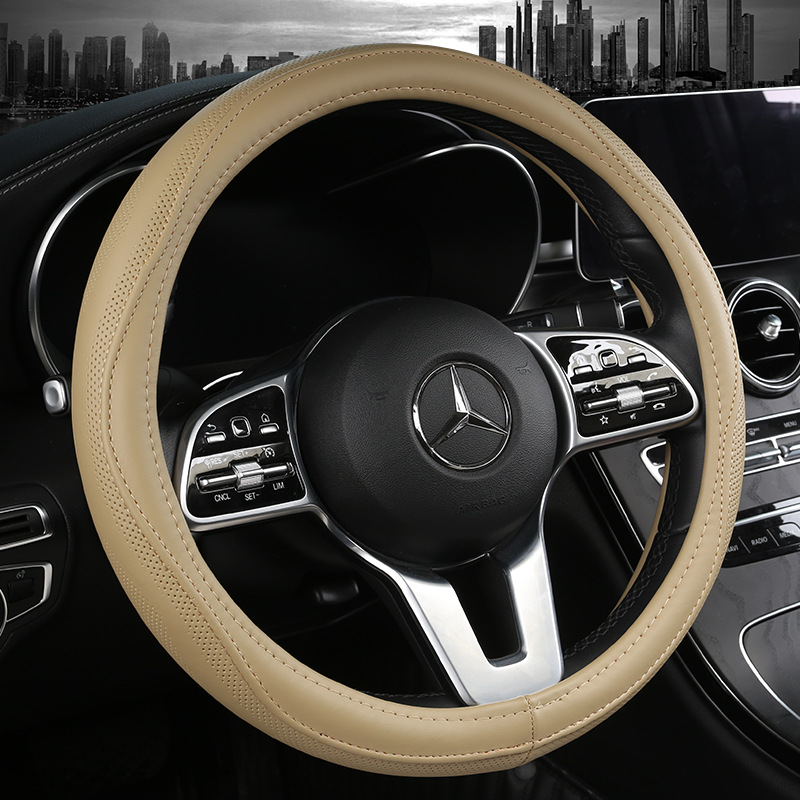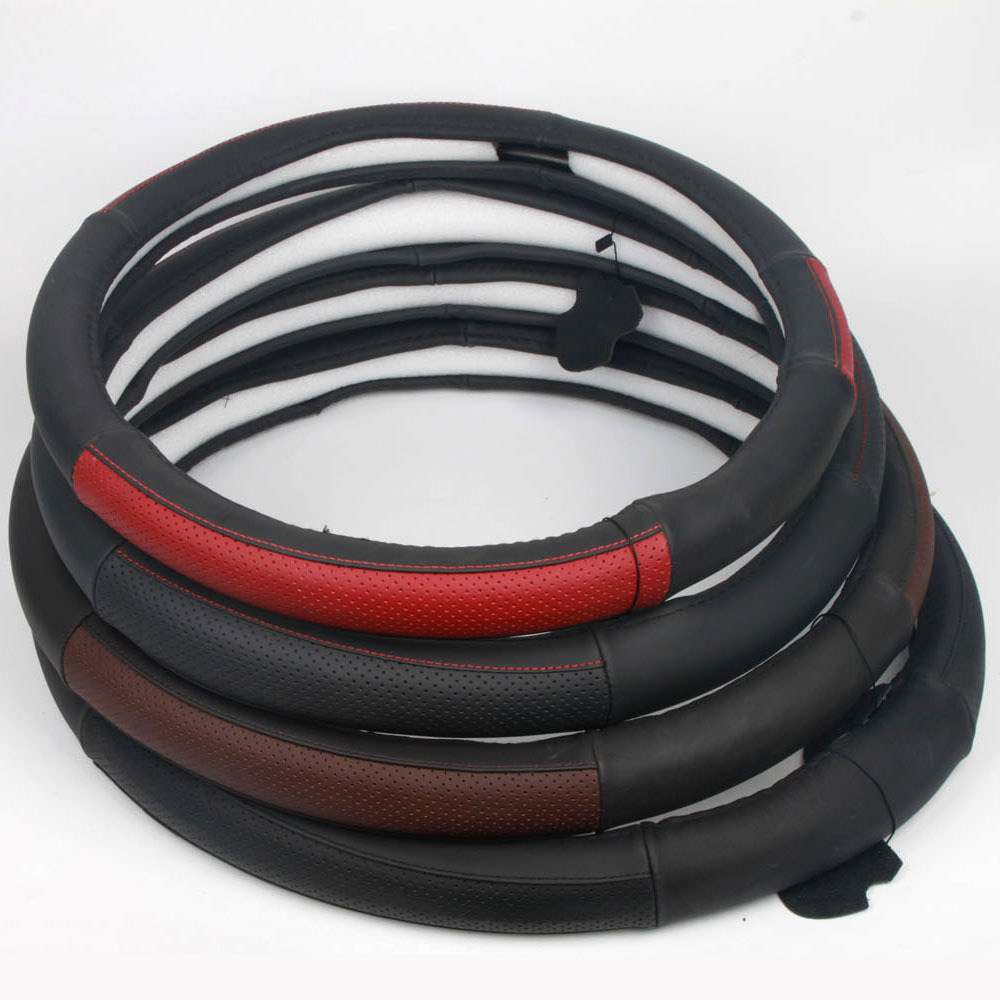 クロスボーダーアマゾンパンチング通気性ステアリングホイールカバーユニバーサル超薄型スポーツスタイルステッチステアリングホイールカバー四季用