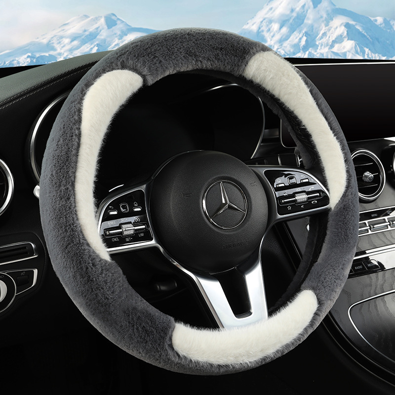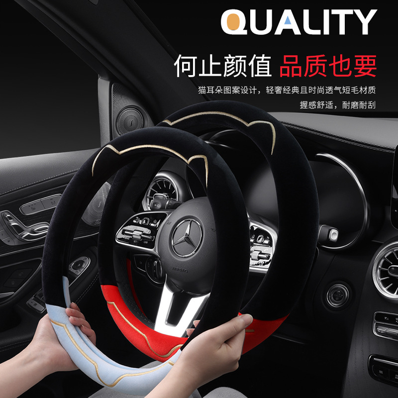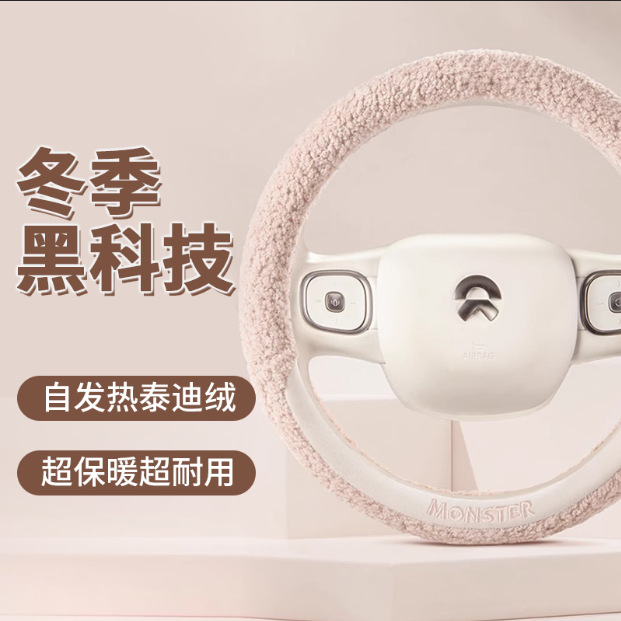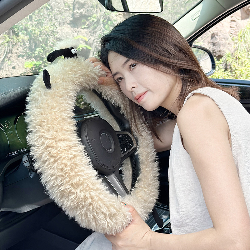 車のハンドルカバー冬のぬいぐるみかわいい女性の滑り止め保温テディベルベットの短いベルベット車のカバーアニメの個性