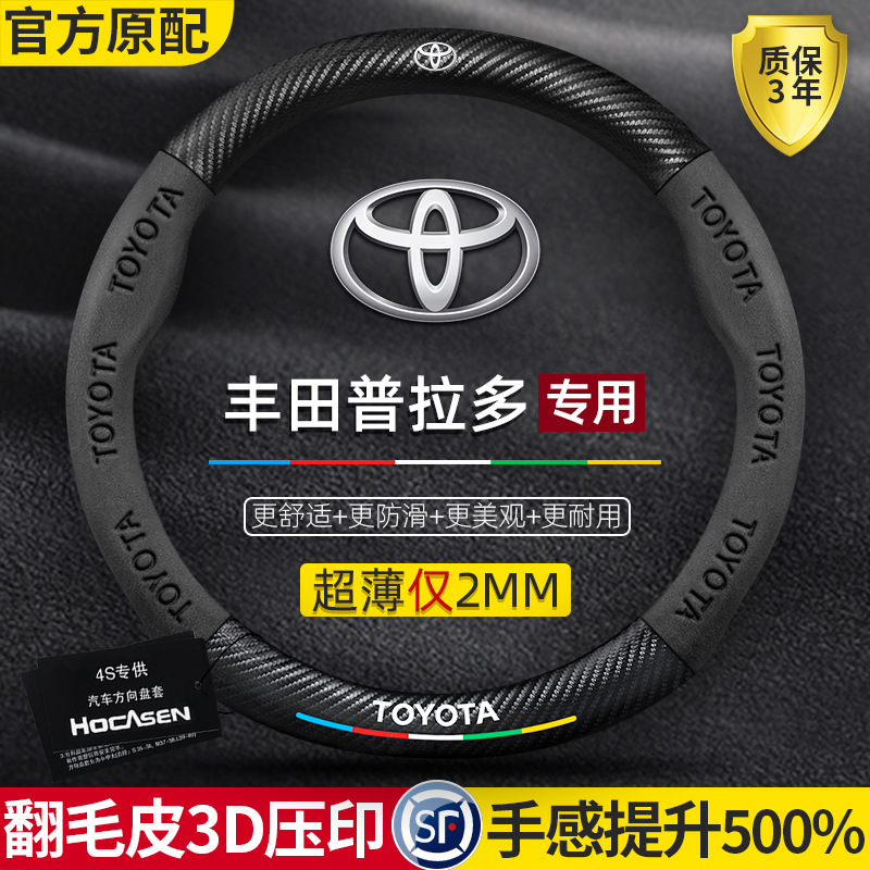 トヨタプラド覇道ハンドルカバー滑り止め炭素繊維超薄真皮毛皮自動車ハンドルカバーに適しています