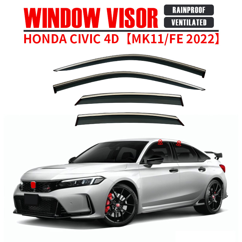 本田思域三室晴雨防雨眉側窓ガイド板civic 4d window visorに適用します。
