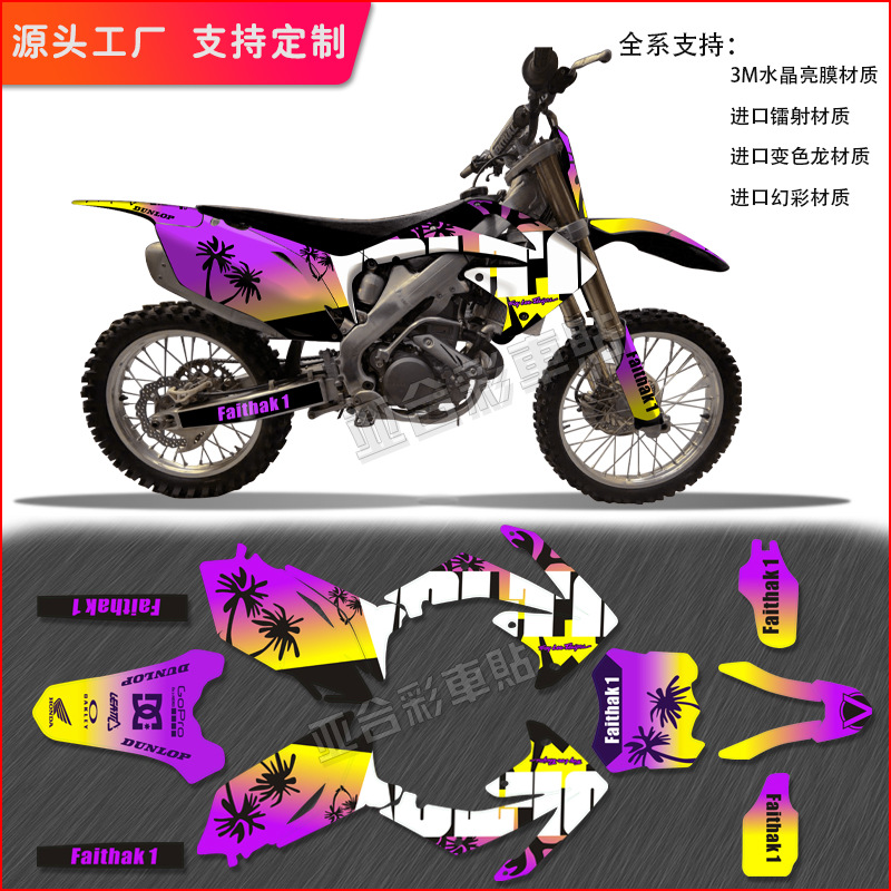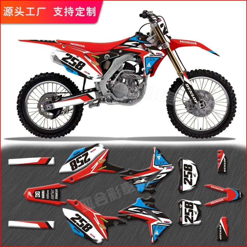 クロスカントリーオートバイのレーザー車体はcrfシリーズの外殻の完成車のシールを貼って装飾を改造して絵のプリントの明るい膜を貼ります。