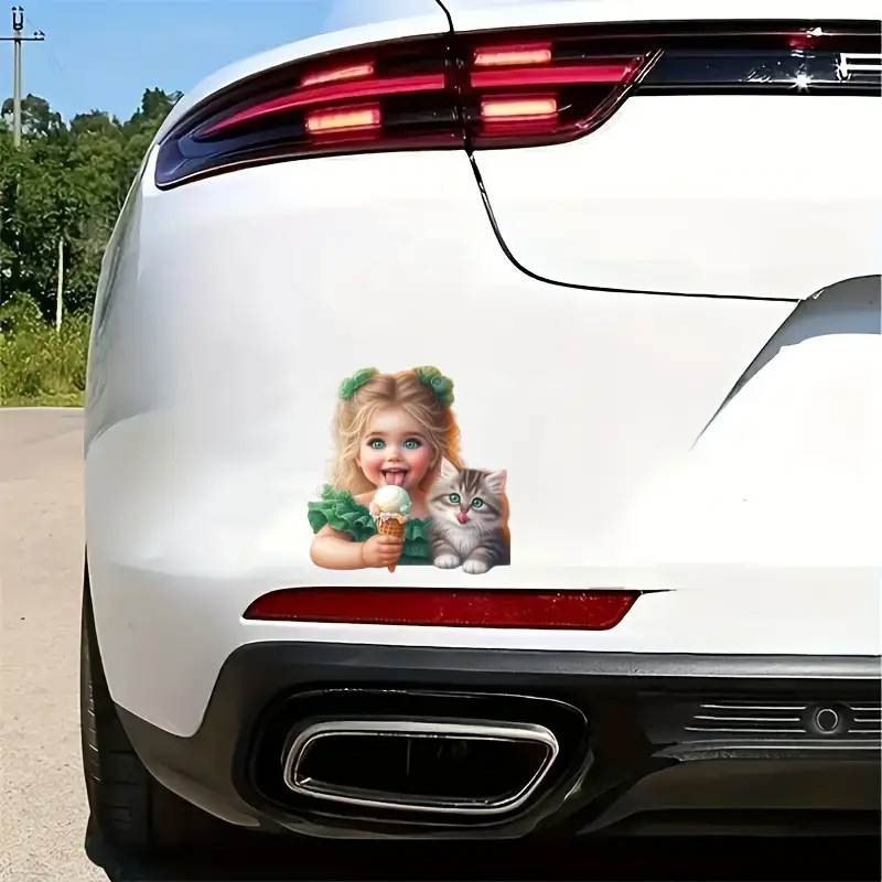 工場直販デザインの売れ筋カービニールステッカーかわいい女の子と子猫のアイスクリーム付きグリーンドレス