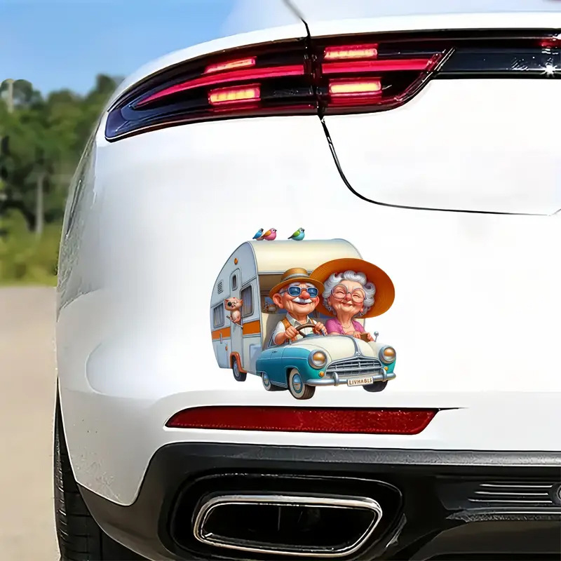 工場直販でさまざまな車のステッカーをデザインできます。魅力的な高齢の夫婦のロードトリップ装飾ビニールステッカー